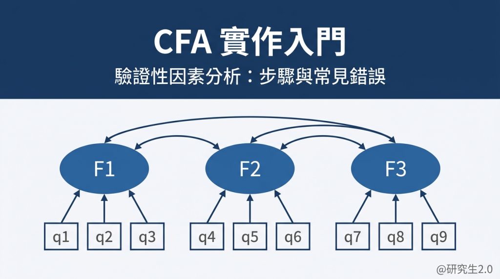 先講一個核心提醒:CFA 不是在證明你的量表一定正確,而是在檢驗你的理論模型是否站得住。 學生最常錯的,不是不會跑,而是把統計決策和理論論證分開了——審稿人最常抓的,也正是這個斷裂。